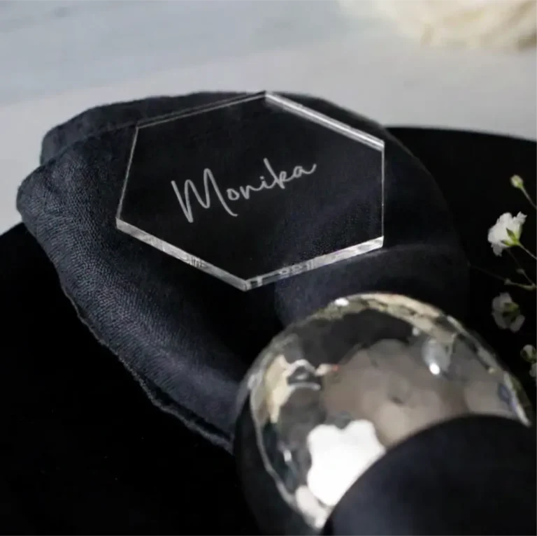 Stalo akcentus: Meniu korteles, stalų numerius, servetėlių žiedus iš medžio ar akrilo.