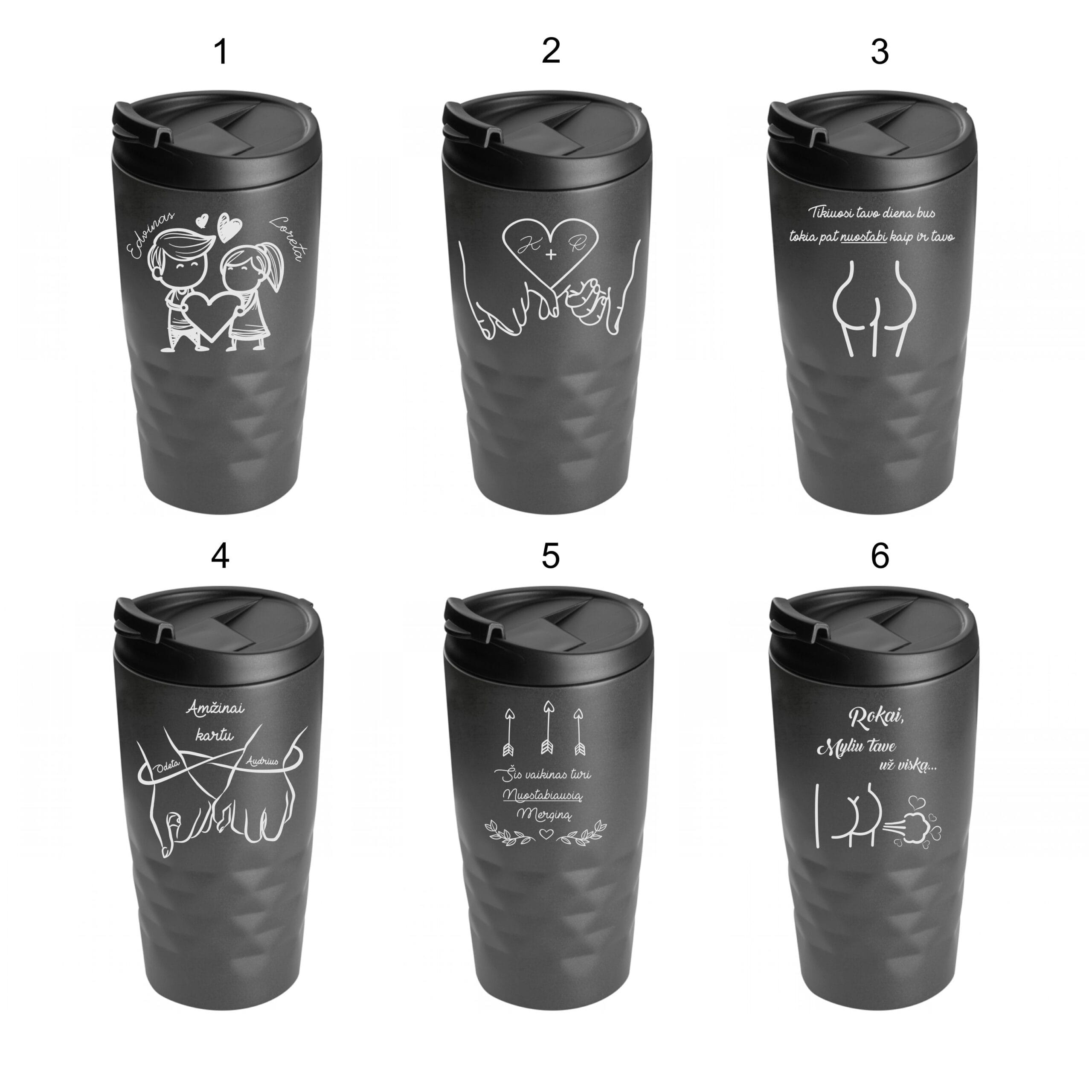 Graviruotas termo puodelis 6 skirtingi dizainai