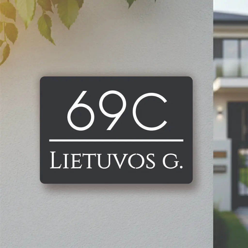 3D efekto namo numeris su gatvės pavadinimu (Modelis V2)