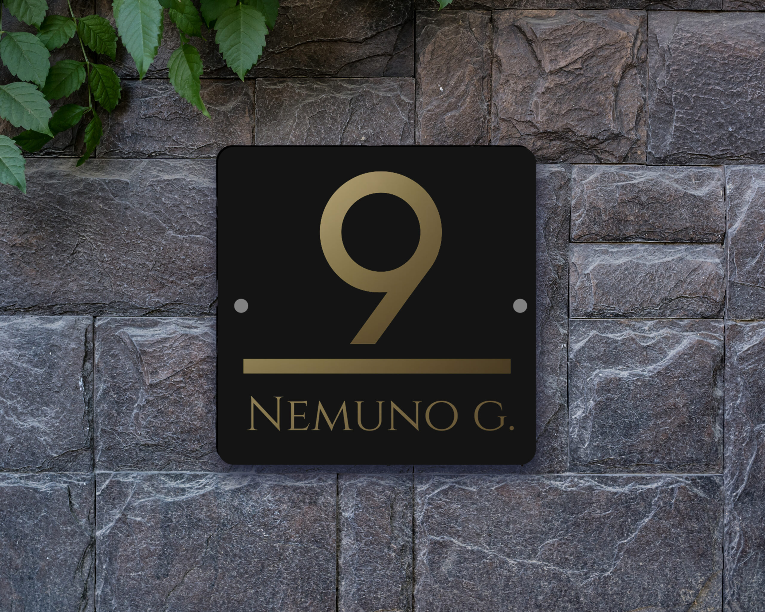 Minimalistinio dizaino namo ženklai. Numeriai, gatvių pavadinimai. Naudojamos medžiagos yra aukščiausios rūšies, atsparios UV spinduliams, gamtos poveikiui, todėl Jūsų namo ženklas yra ilgaamžis. Aiškiai matomas iš daugiau nei 20m atstumo.